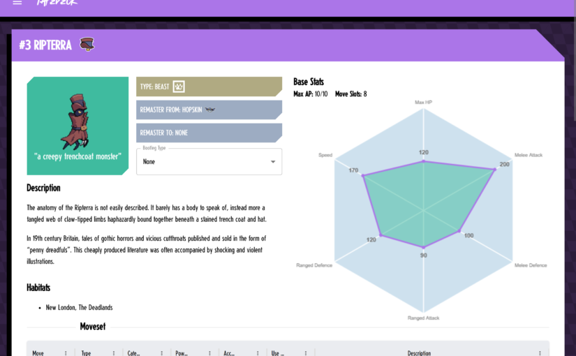 Web application designed to display information about the gameplay and monster species of the video game Cassette Beasts, built with an ASP.NET API and a React.js frontend